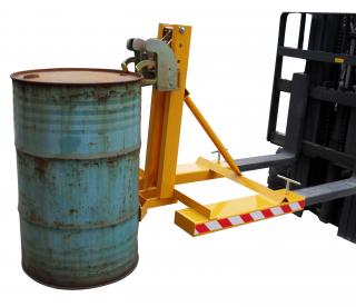 ★采用优质钢材,橡皮防护,结构美观,咬合力强。 ★鹰嘴夹具与叉车巧妙的配合,仅依靠叉车的动作,无需其它动力。 ★适用于各种规格的钢制油桶及带桶边的塑料油桶的搬运、堆放。 ★表面使用RAL1028喷粉。